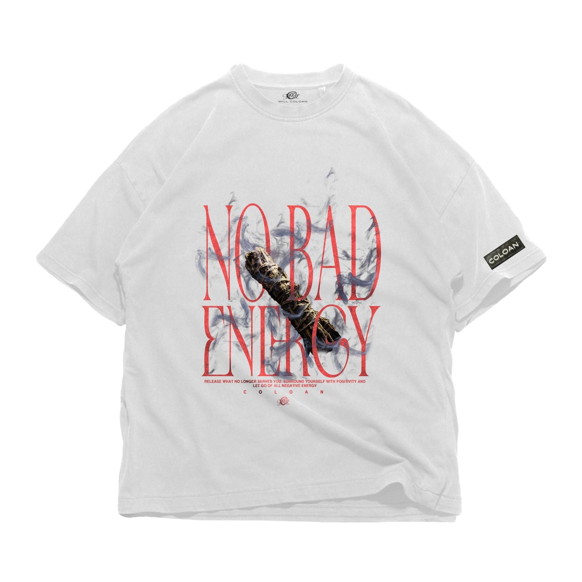 Get ready to elevate your style with this ultra-cool, No Bad Energy™ 3 T-Shirt in White. Whether you're rocking it solo or layering it under a jacket, this tee is a must-have for any fashion-forward wardrobe.